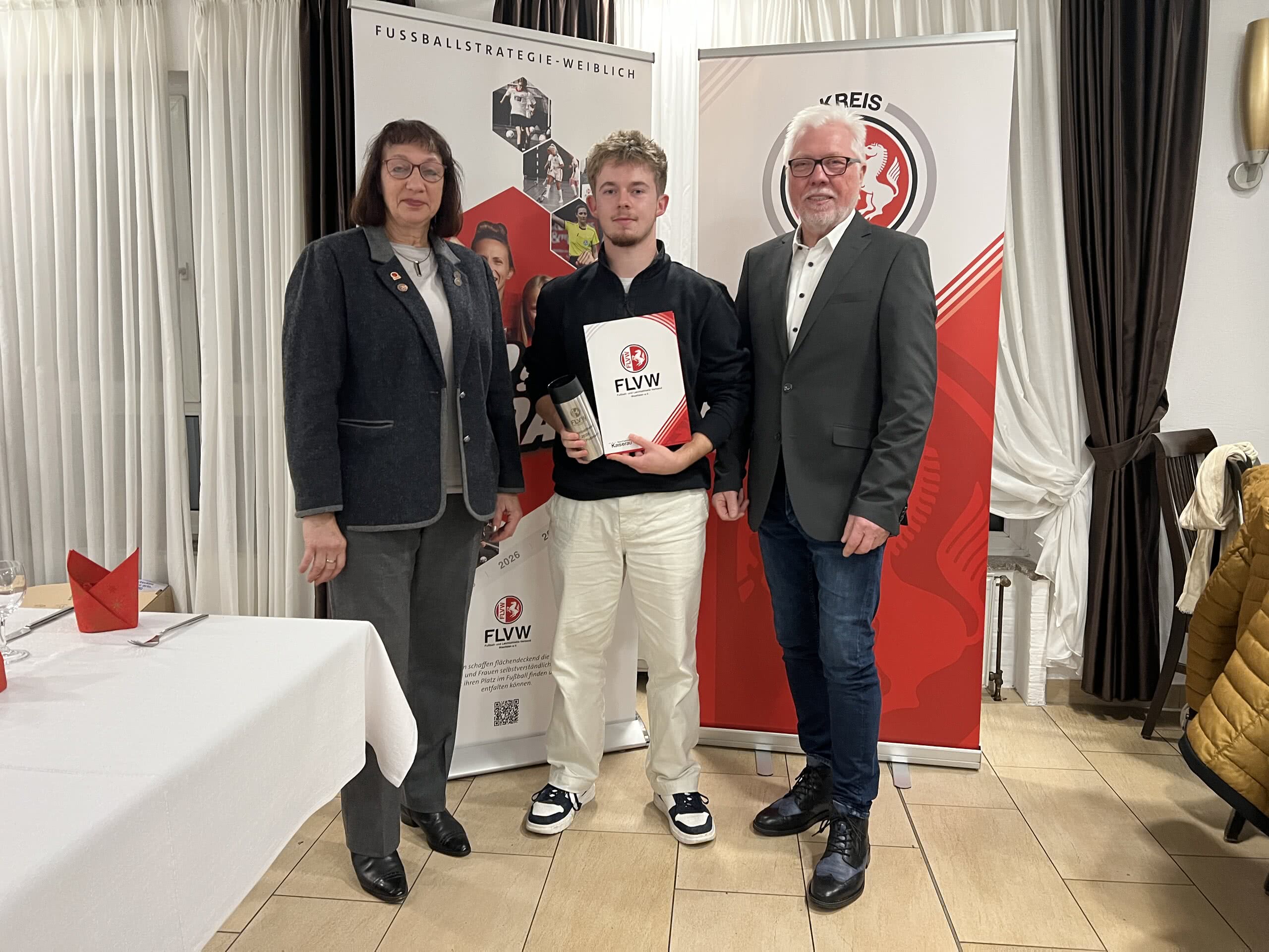 Ein besonderer Glückwunsch geht an Marvin Pollmann, der im Rahmen von der Aktion „Junges Ehrenamt“ die Bildungsreise des DFB nach Barcelona gewonnen hat. Ebenso gratulieren wir Peter Keißelt, unserem Kreissieger beim DFB-Ehrenamtspreis, der an einem Dankeschön-Wochenende teilnehmen darf. Die beiden Sieger wurden im Vorfeld durch eine Abstimmung unter den teilnehmenden Vereinen ermittelt.